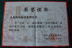 2008年7月25日,我公司被太原市委統(tǒng)戰(zhàn)部授予“統(tǒng)戰(zhàn)系統(tǒng)抗震救災先進單位”榮譽稱號。