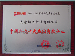 2010年6月24日,我公司在“第四屆中國(蘇州)國際物流與供應(yīng)鏈合作發(fā)展高峰論壇"暨"影響中國2009--2010中國物流杰出貢獻(xiàn)獎(jiǎng)"表彰活動(dòng),被授予“中國物流十大杰出貢獻(xiàn)企業(yè)”榮譽(yù)稱號(hào)。