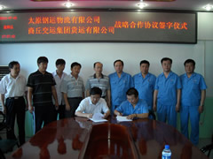2010年7月2日,我公司與商丘交運(yùn)集團(tuán)貨運(yùn)有限公司簽訂合作協(xié)議。我公司成立商丘分公司,依托對方資源優(yōu)勢、地域優(yōu)勢和管理優(yōu)勢,開展鋼材產(chǎn)品配送業(yè)務(wù)和其他市場貨運(yùn)業(yè)務(wù)。